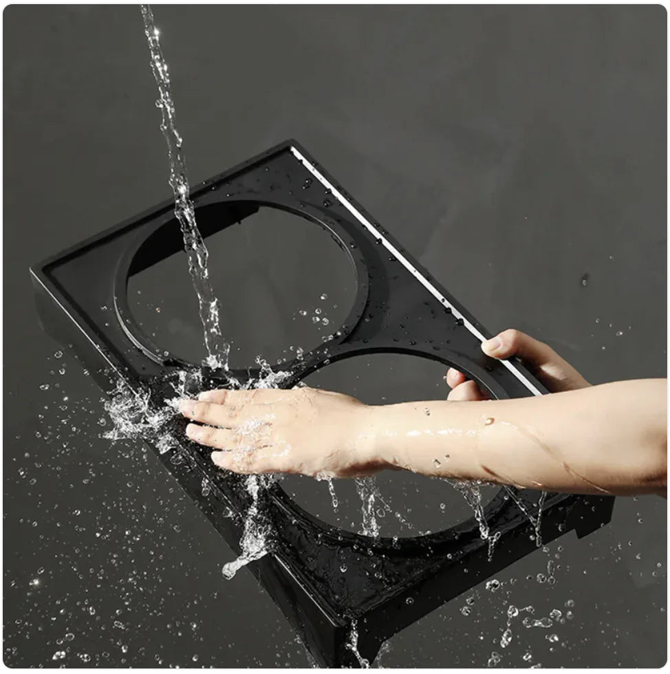 ✅ Stainless Steel Double Bowl + Elevated Stand